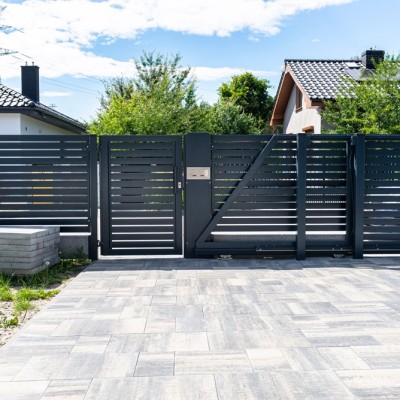 Our affordable metal fencing system enables the installation of slats in gates. This allows them to fit into most gate span dimensions. The spacing between the slats can be set according to individual preferences.
